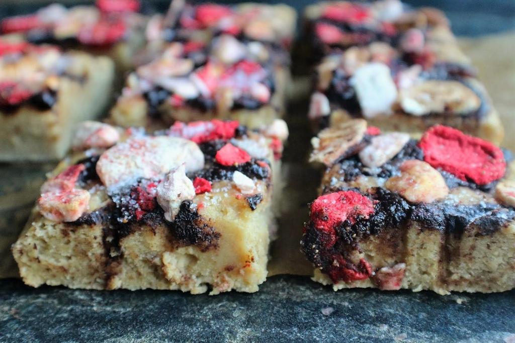 Pamela’s strawberry, banana and chocolate slice